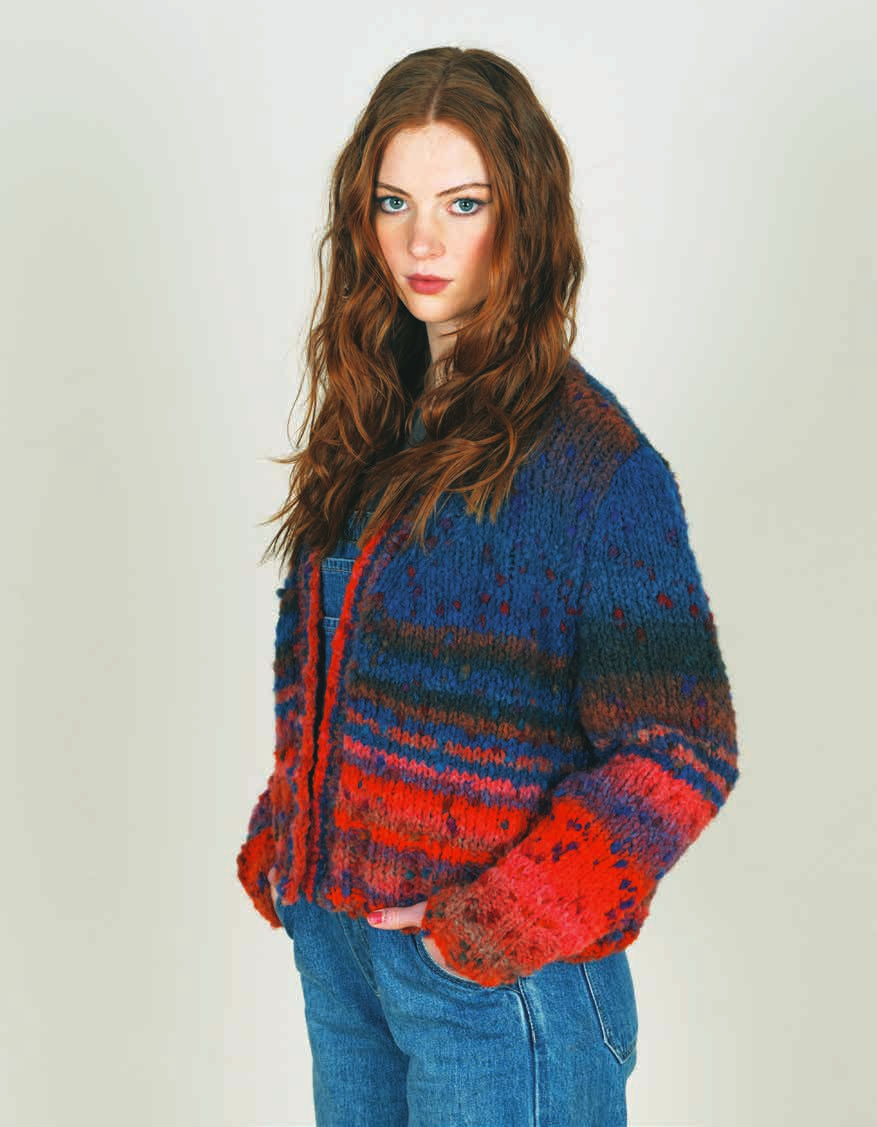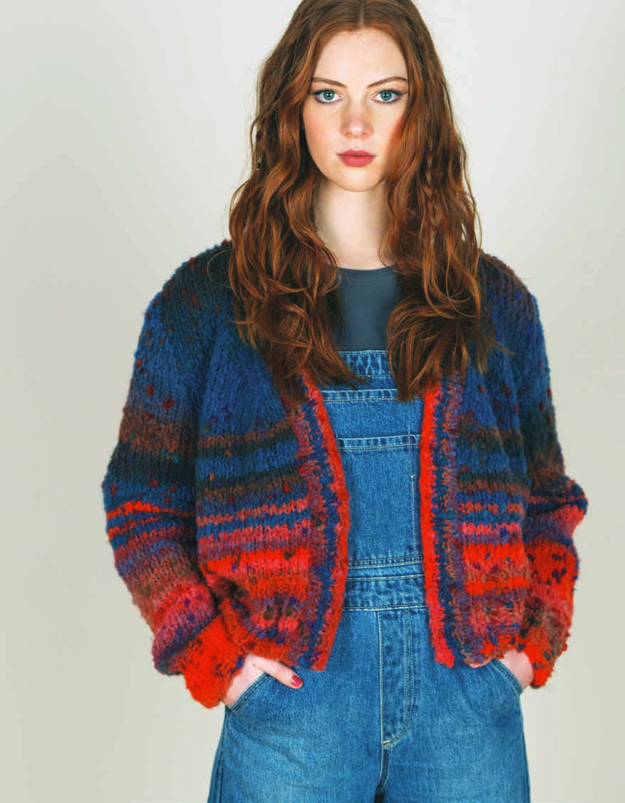 Corbett Cardigan with Louisa Harding Pouffe digital knitting pattern download